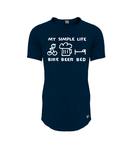 Mens T-shirt PARKOUR LONG for man with design 1056 BIKE BEER BED in color DARK NAVY
