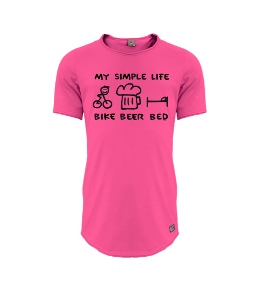 Mens T-shirt PARKOUR LONG for man with design 1056 BIKE BEER BED in color INDIAN LILA