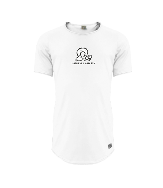 Mens T-shirt PARKOUR LONG for man with design 1062 I BELIVE I CAN FLY in color WHITE