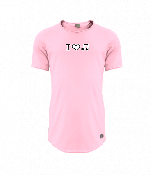 Mens T-shirt PARKOUR LONG for man with design 1067 I LOVE MUSIC in color BABY PINK