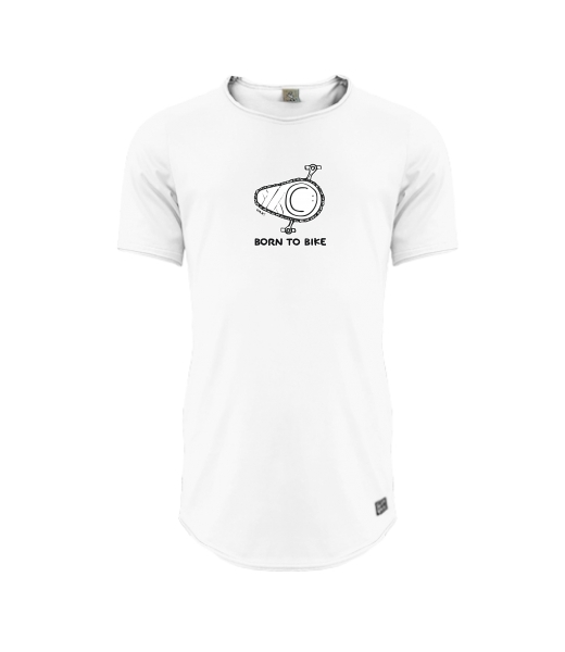 Mens T-shirt PARKOUR LONG for man with design 1074 BORN TO BIKE in color WHITE