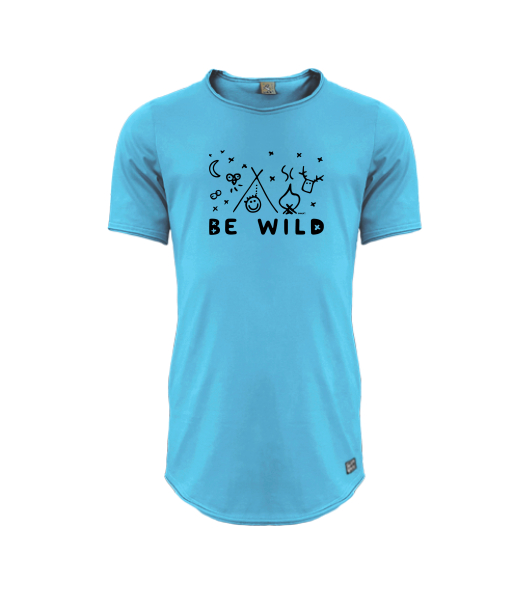 Mens T-shirt PARKOUR LONG for man with design 1174 BE WILD in color BLUE ATOLL