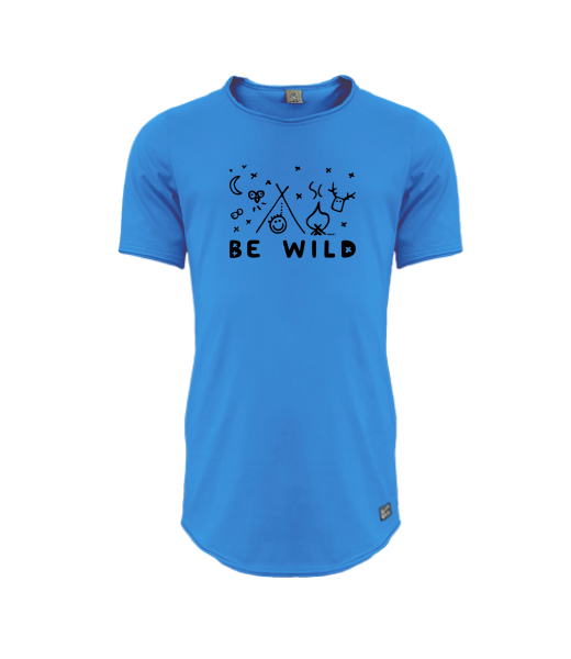 Mens T-shirt PARKOUR LONG for man with design 1174 BE WILD in color CAPRI BLUE