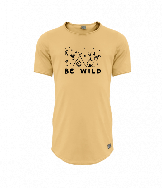 Mens T-shirt PARKOUR LONG for man with design 1174 BE WILD in color MUSTARD