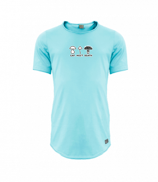 Mens T-shirt PARKOUR LONG for man with design 1177 EAT MEET DEATH in color PASTEL BLUE