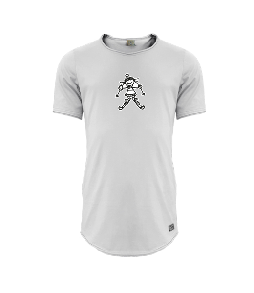 Mens T-shirt PARKOUR LONG for man with design 1179 SKIER GIRL in color CEMENT
