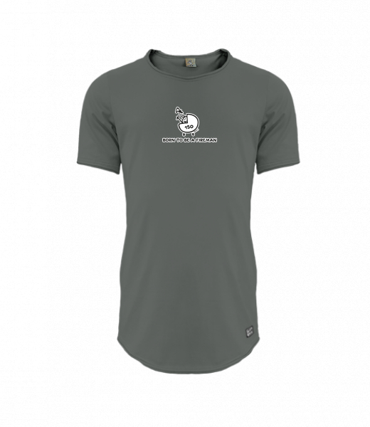 Mens T-shirt PARKOUR LONG for man with design 1184 BORN TO BE A FIREMAN in color DARK GRAY