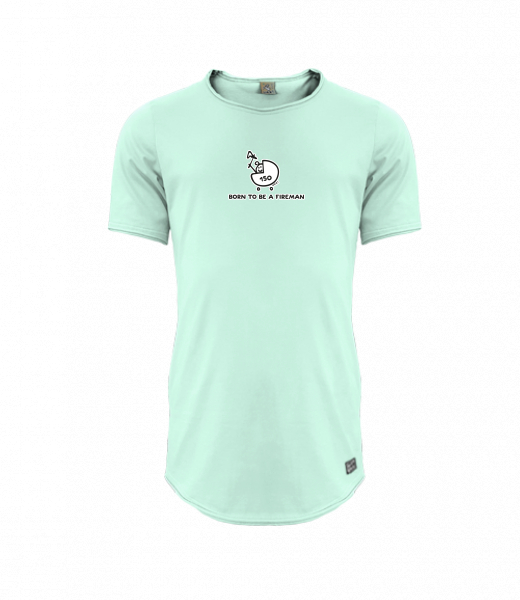 Mens T-shirt PARKOUR LONG for man with design 1184 BORN TO BE A FIREMAN in color MINT