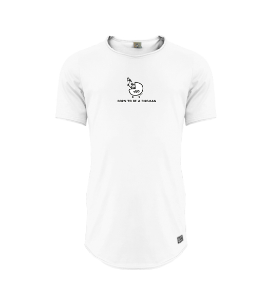 Mens T-shirt PARKOUR LONG for man with design 1184 BORN TO BE A FIREMAN in color WHITE