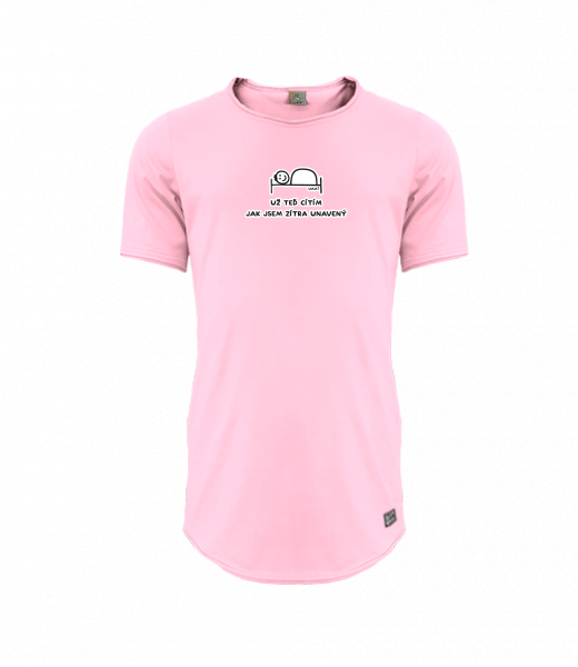 Mens T-shirt PARKOUR LONG for man with design 1200 UŽ TEĎ CÍTÍM JAK JSEM ZÍTRA UNAVENÝ in color BABY PINK