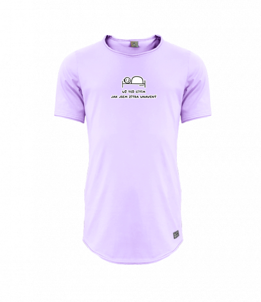 Mens T-shirt PARKOUR LONG for man with design 1200 UŽ TEĎ CÍTÍM JAK JSEM ZÍTRA UNAVENÝ in color LAVENDER