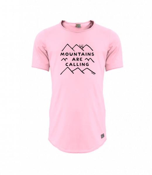 Mens T-shirt PARKOUR LONG for man with design 1204 MOUNTAINS ARE CALLING in color BABY PINK