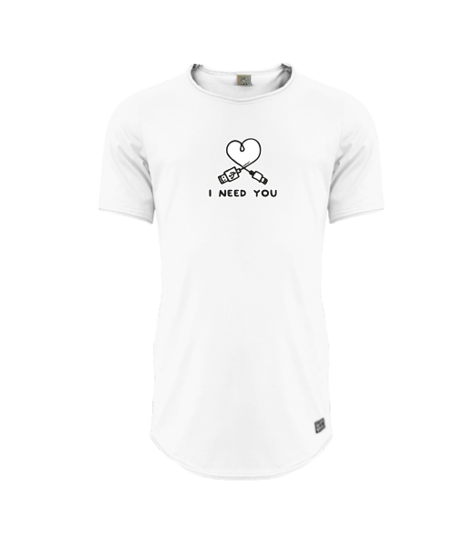 Mens T-shirt PARKOUR LONG for man with design 1206 I NEED YOU 2 in color WHITE