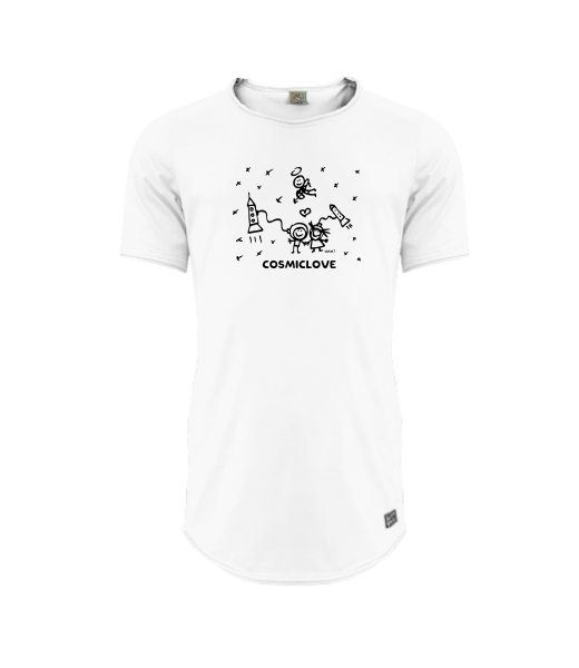 Mens T-shirt PARKOUR LONG for man with design 1207 COSMICLOVE in color WHITE