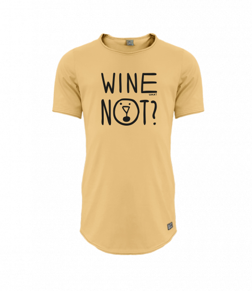 Mens T-shirt PARKOUR LONG for man with design 1210 WINE NOT in color MUSTARD