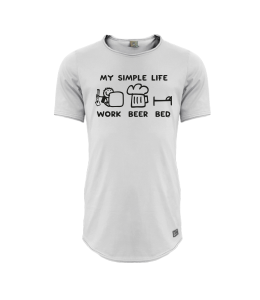 Mens T-shirt PARKOUR LONG for man with design 1211 MY SIMPLE LIFE WORK BEER BED in color CEMENT