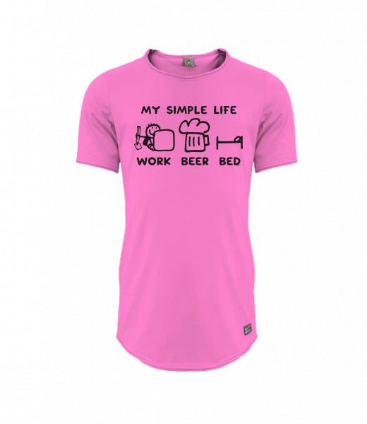 Mens T-shirt PARKOUR LONG for man with design 1211 MY SIMPLE LIFE WORK BEER BED in color CLASSIC PINK