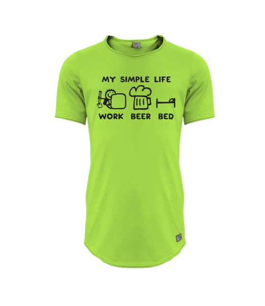 Mens T-shirt PARKOUR LONG for man with design 1211 MY SIMPLE LIFE WORK BEER BED in color PARROT GREEN