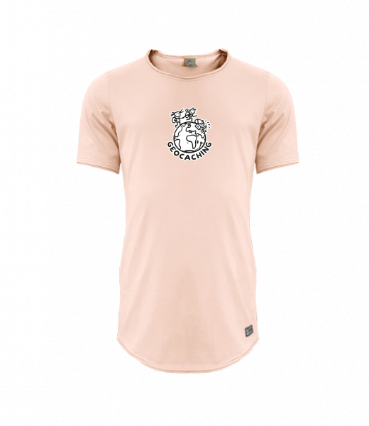 Mens T-shirt PARKOUR LONG for man with design 1215 GEOCACHING in color CAPPUCINO