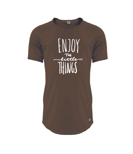 Mens T-shirt PARKOUR LONG for man with design 1222 ENJOY THE LITTLE THINGS in color CHESTNUT