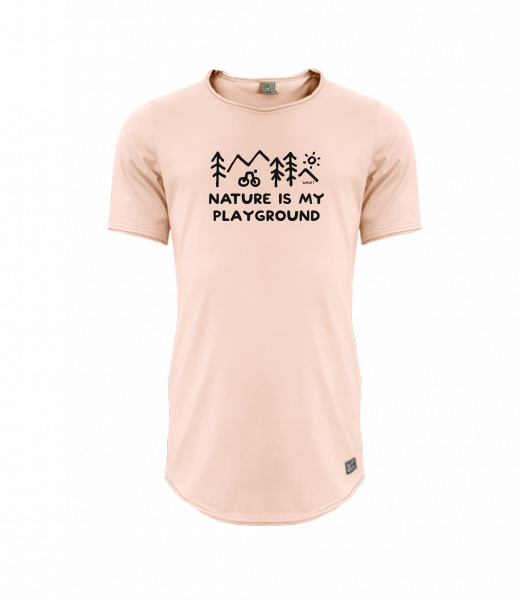 Mens T-shirt PARKOUR LONG for man with design 1223 NATURE IS MY PLAYGROUND in color CAPPUCINO