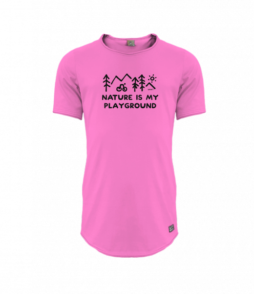 Mens T-shirt PARKOUR LONG for man with design 1223 NATURE IS MY PLAYGROUND in color CLASSIC PINK