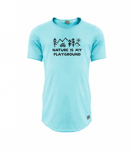 Mens T-shirt PARKOUR LONG for man with design 1223 NATURE IS MY PLAYGROUND in color PASTEL BLUE