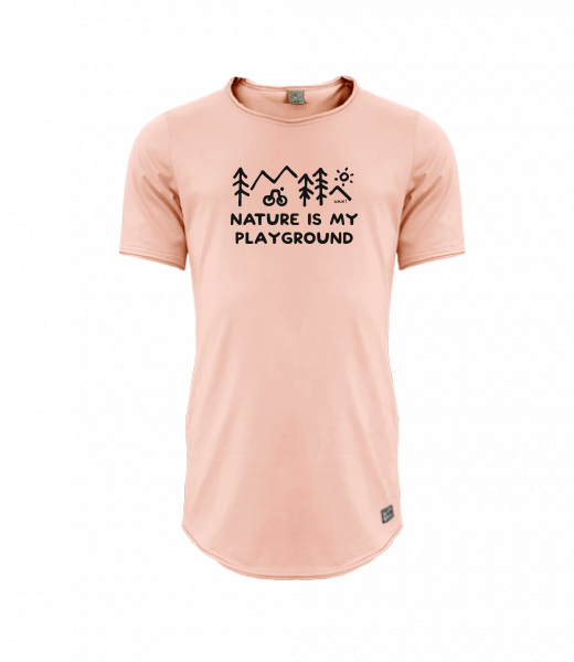 Mens T-shirt PARKOUR LONG for man with design 1223 NATURE IS MY PLAYGROUND in color PEACH