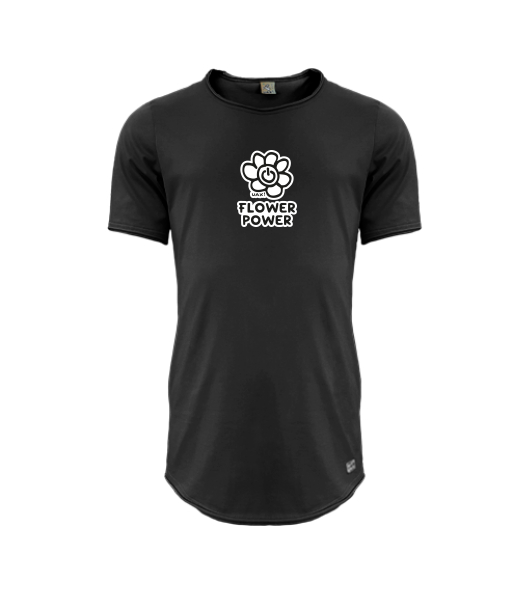 Mens T-shirt PARKOUR LONG for man with design 1227 FLOWER POWER in color BLACK
