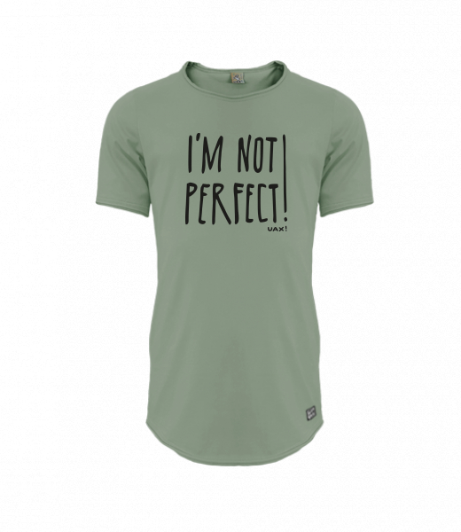 Mens T-shirt PARKOUR LONG for man with design 1230 IM NOT PERFECT in color OLIVA