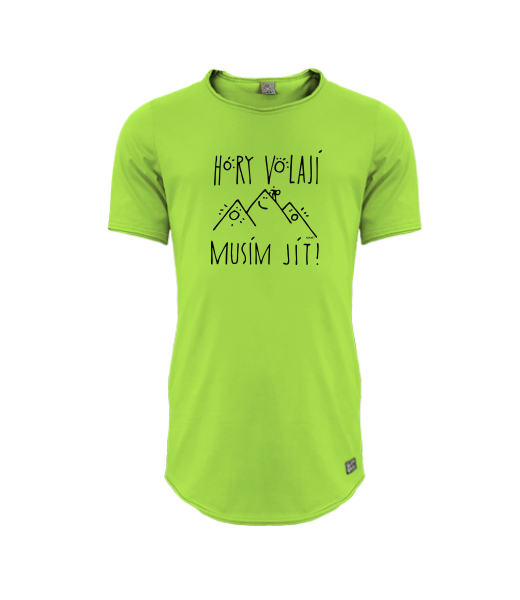 Mens T-shirt PARKOUR LONG for man with design 1233 HORY VOLAJÍ MUSÍM JÍT in color PARROT GREEN