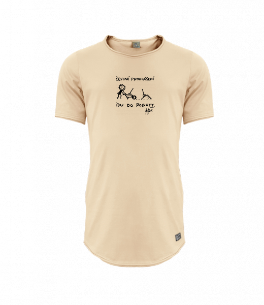 Mens T-shirt PARKOUR LONG for man with design 1303 ČESTNÉ PROHLÁŠENÍ IDU DO ROBOTY in color CARAMEL