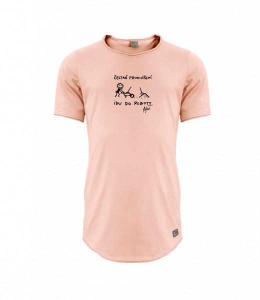 Mens T-shirt PARKOUR LONG for man with design 1303 ČESTNÉ PROHLÁŠENÍ IDU DO ROBOTY in color PEACH