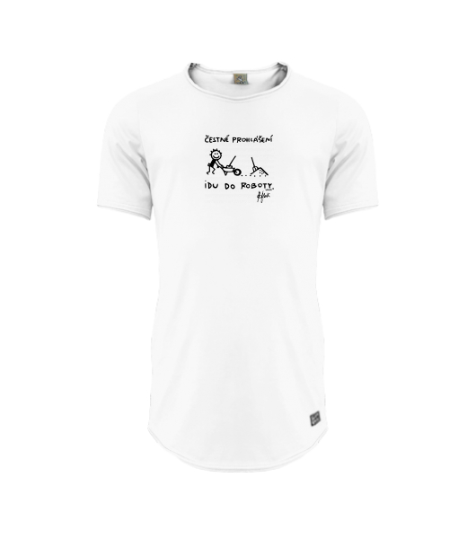 Mens T-shirt PARKOUR LONG for man with design 1303 ČESTNÉ PROHLÁŠENÍ IDU DO ROBOTY in color WHITE