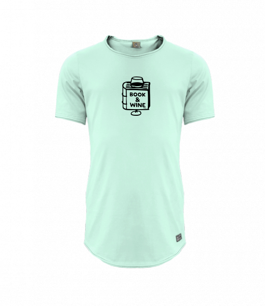 Mens T-shirt PARKOUR LONG for man with design 1322 BOOK AND WINE in color MINT