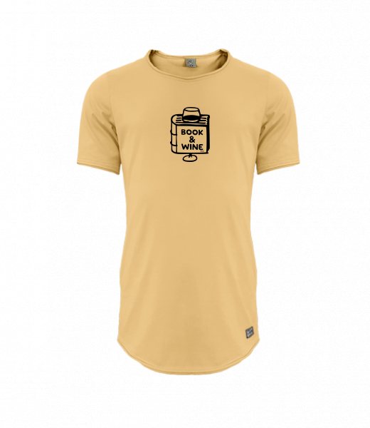 Mens T-shirt PARKOUR LONG for man with design 1322 BOOK AND WINE in color MUSTARD