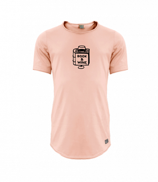 Mens T-shirt PARKOUR LONG for man with design 1322 BOOK AND WINE in color PEACH