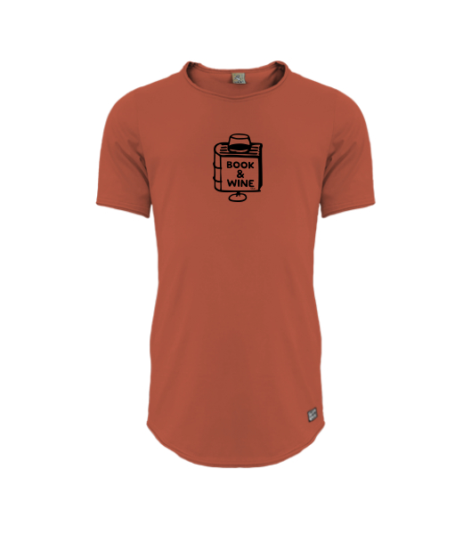 Mens T-shirt PARKOUR LONG for man with design 1322 BOOK AND WINE in color TERRA