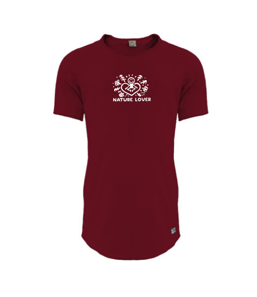 Mens T-shirt PARKOUR LONG for man with design 1325 NATURE LOVER in color DARK RED