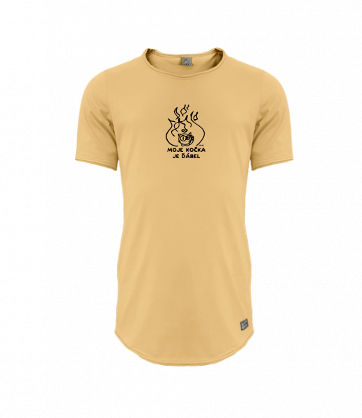 Mens T-shirt PARKOUR LONG for man with design 1326 MOJE KOČKA JE ĎÁBEL in color MUSTARD