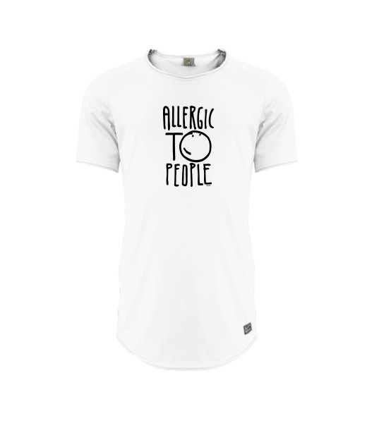 Mens T-shirt PARKOUR LONG for man with design 1329 ALLERGIC TO PEOPLE in color WHITE