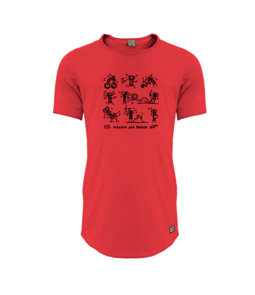 Mens T-shirt PARKOUR LONG for man with design 1343 MAKÁM JAK ŠROUB 2 in color RED