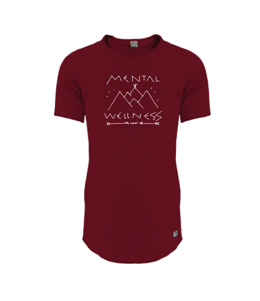 Mens T-shirt PARKOUR LONG for man with design 1344 MENTAL WELLNESS in color DARK RED