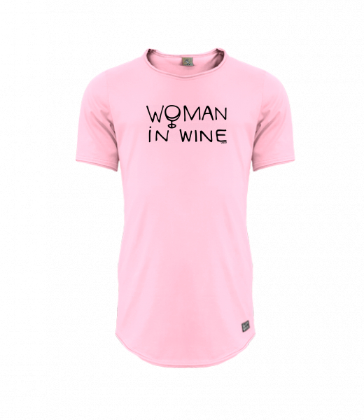 Mens T-shirt PARKOUR LONG for man with design 1346 WOMAN IN WINE 1 in color BABY PINK