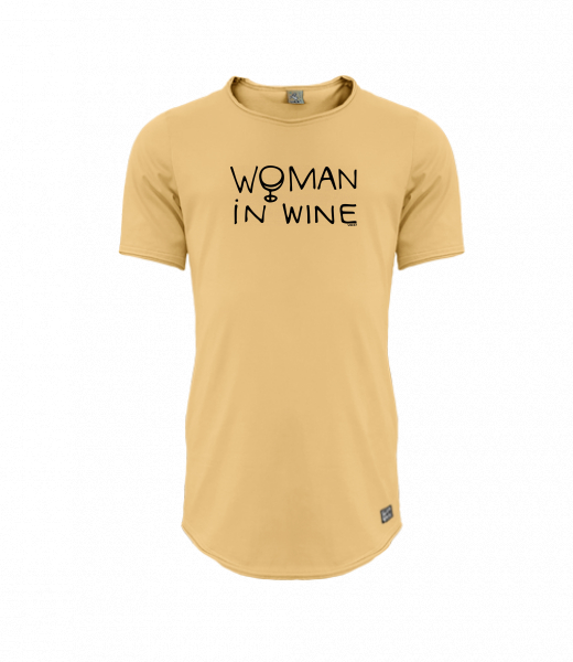 Mens T-shirt PARKOUR LONG for man with design 1346 WOMAN IN WINE 1 in color MUSTARD