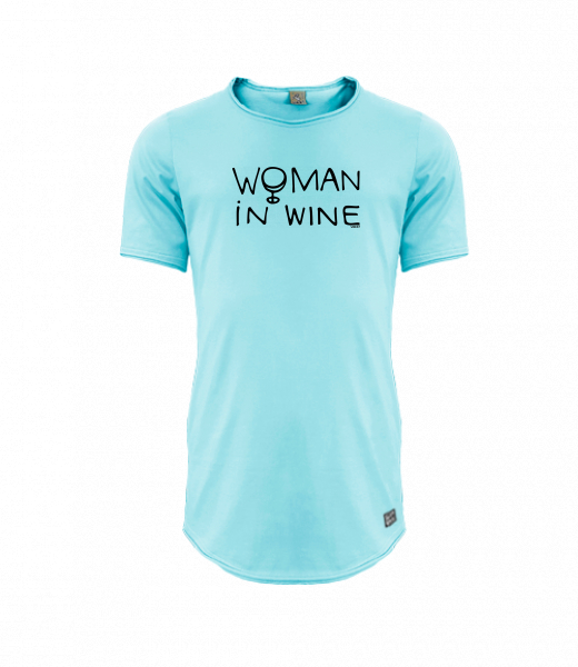 Mens T-shirt PARKOUR LONG for man with design 1346 WOMAN IN WINE 1 in color PASTEL BLUE