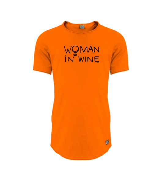 Mens T-shirt PARKOUR LONG for man with design 1346 WOMAN IN WINE 1 in color SIGNAL ORANGE