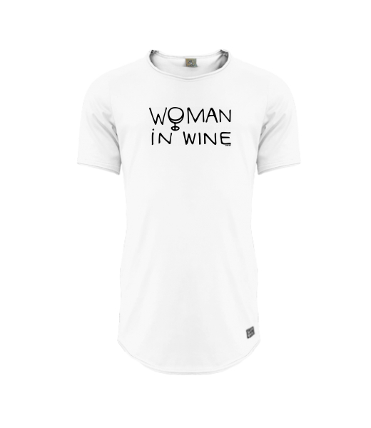 Mens T-shirt PARKOUR LONG for man with design 1346 WOMAN IN WINE 1 in color WHITE