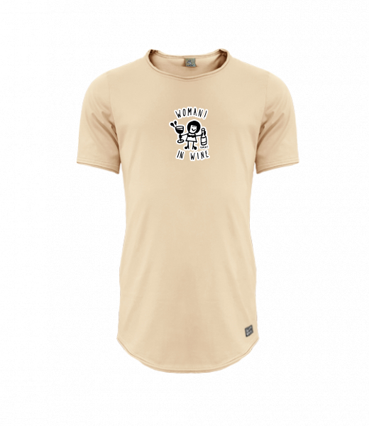 Mens T-shirt PARKOUR LONG for man with design 1347 WOMAN IN WINE 2 in color CARAMEL