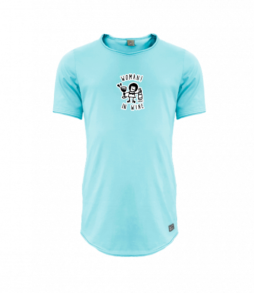 Mens T-shirt PARKOUR LONG for man with design 1347 WOMAN IN WINE 2 in color PASTEL BLUE